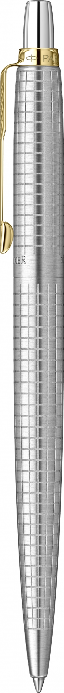 • Культовый силуэт, являющийся прекрасным примером мастерства Parker, дополнен корпусом с облицовкой из нержавеющей стали, колпачком с узором Ciselé с лазерной гравировкой и зажимом из полированной нержавеющей стали.